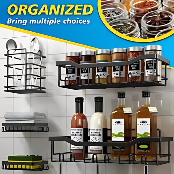 - 𝟓-𝐢𝐧-𝟏 𝐌𝐮𝐥𝐭𝐢𝐩𝐮𝐫𝐩𝐨𝐬𝐞 𝐎𝐫𝐠𝐚𝐧𝐢𝐳𝐞𝐫 𝐂𝐨𝐦𝐛𝐨: Includes wall shelf, soap dish, toothbrush holder, and metal storage racks to keep your bathroom essentials neatly organized in one place.
