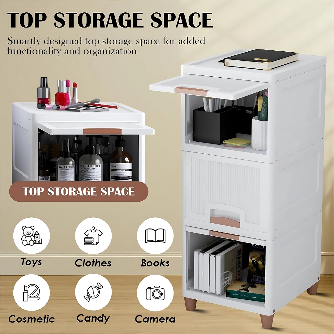• 𝐃𝐮𝐫𝐚𝐛𝐥𝐞 𝐏𝐥𝐚𝐬𝐭𝐢𝐜 𝐌𝐚𝐭𝐞𝐫𝐢𝐚𝐥: Constructed from high-quality, impact-resistant ABS plastic, this cabinet is built for long-lasting use, making it suitable for everything from kitchen supplies to baby storage.