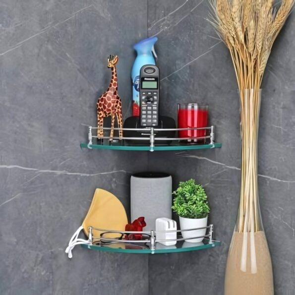 - Corner Glass Shelf: Corner shelf helps you organize and store items. Ideal for use in bathrooms