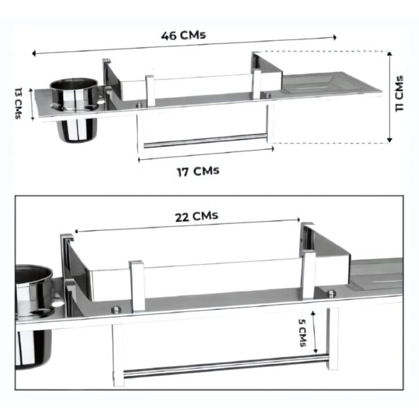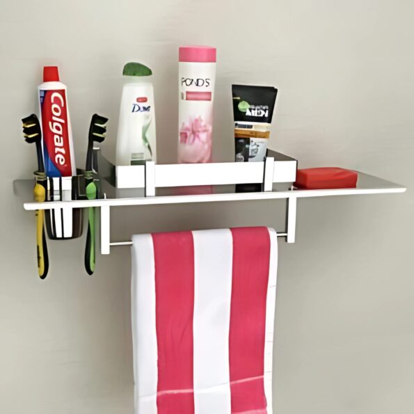 Stainless Steel Bathroom Shelf/4in1 Multipurpose Shelf for Bathroom/Towel Hanger/Tumbler Holder/Soap Dish/Stand/Bathroom Accessories Set (18 x 5 Inches)