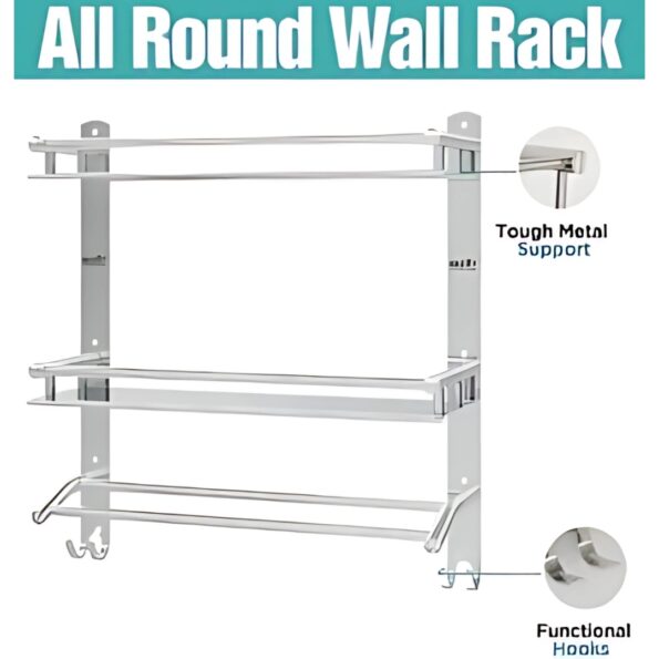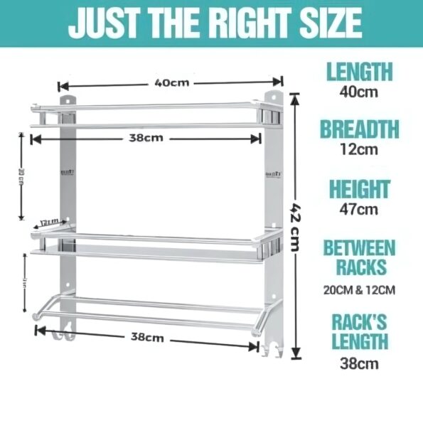 - 𝐎𝐩𝐭𝐢𝐦𝐚𝐥 𝐃𝐢𝐦𝐞𝐧𝐬𝐢𝐨𝐧𝐬: Measuring 13D x 38W x 46H cm, the bathroom cloth hanger for wall has the perfect balance of storage capacity and space efficiency, making it ideal for the bathroom, kitchen, washroom, and wash area. Its compact size makes it versatile for various room layouts, maximizing storage potential in limited spaces.