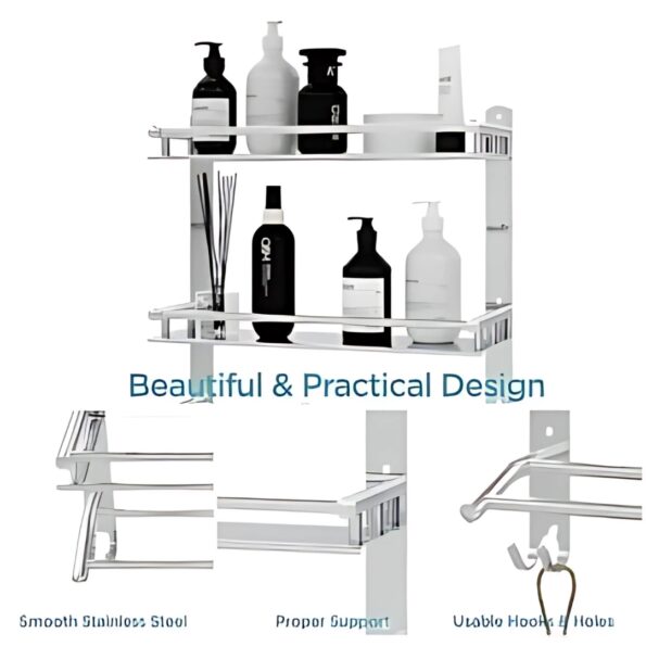 - 𝐃𝐮𝐫𝐚𝐛𝐥𝐞 𝐒𝐭𝐚𝐢𝐧𝐥𝐞𝐬𝐬 𝐒𝐭𝐞𝐞𝐥 𝐌𝐚𝐭𝐞𝐢𝐚𝐥: Crafted from high-quality stainless steel, this bathroom Shelf ensures long-lasting durability, corrosion resistance, and a sleek, modern aesthetic that enhances any bathroom decor. With its robust construction, this bathroom towel rod is built to withstand daily use and maintain its pristine appearance for years to come.